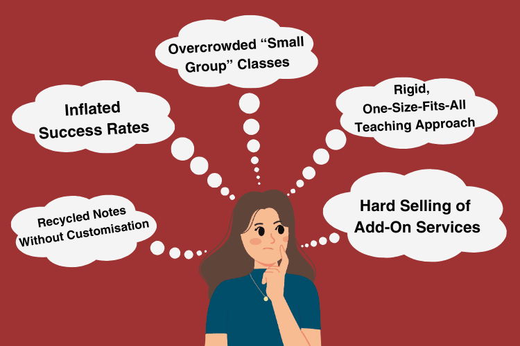 A few tutors boast near-perfect track records, but closer scrutiny reveals cherry-picked case studies or exaggerated improvements. - Overcrowded “Small Group” Classes